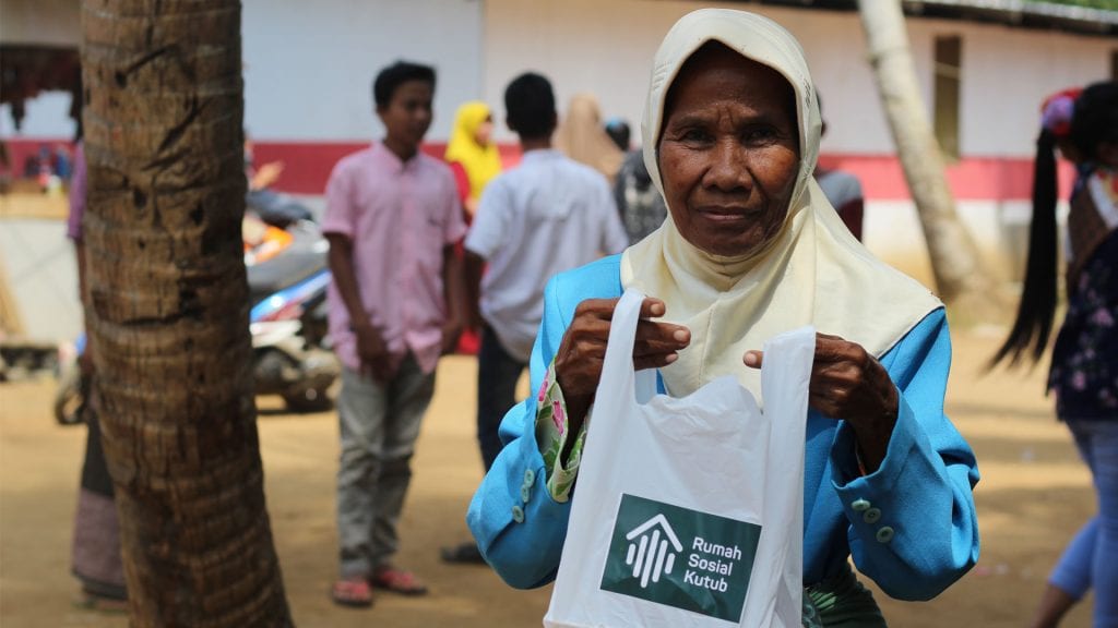 Warga banten yang menjadi korban tsunami menikmati daging kurban di Hunian Sementara bersama Qurban Special for Humanity.