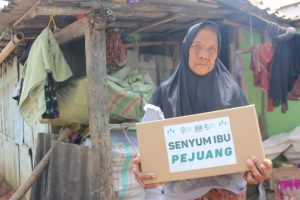 Selain Nenek Salma yang menerima paket pangan Senyum Ibu Pejuang, ada juga Ibu Onasih usia 50 tahun yang merupakan seorang Janda yang harus mengurus anak 2 anak dan 1 keponakan sendirian. Profesinya sebagai asisten Rumah Tangga. Untuk sampai ke rumah tempat ia bekerja pun ia harus berjalan kaki sekitar 5 km.